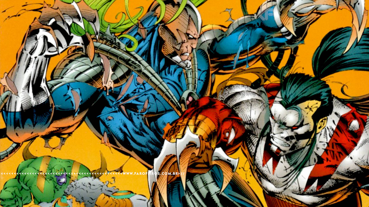 Olhe.. agora eu também fiquei com a pulga atrás da orelha. Fui pesquisar. Este parece que foi o primeiro trabalho do Liefield… Na verdade, se você for olhar a arte da revista, jamais dirá que foi o Liefield! Pq as coisas estão no lugar e há muita coisa ali que sabemos que ele não sabe desenhar. A coisa é que o Karl Kesel era roteirista e arte-finalista e parece que arte-finalizou bem o suficiente para deixar a “arte” do maldito Liefield decente. Descobri uma coisa que eu não sabia! O Liefield decidiu por conta própria mudar a orientação da revista e colocar tudo no formato landscape cada vez que o povo aparecia na dimensão do caos! kkkkkkkk O editor quando viu teve um troço. Imagine o gira-gira que seria pra ler a revista! Por isso o editor recortou todos os desenhos, colou-os no formato adequado e mandou pro Kesel terminar de ajeitar! LOL Liefield fdp!