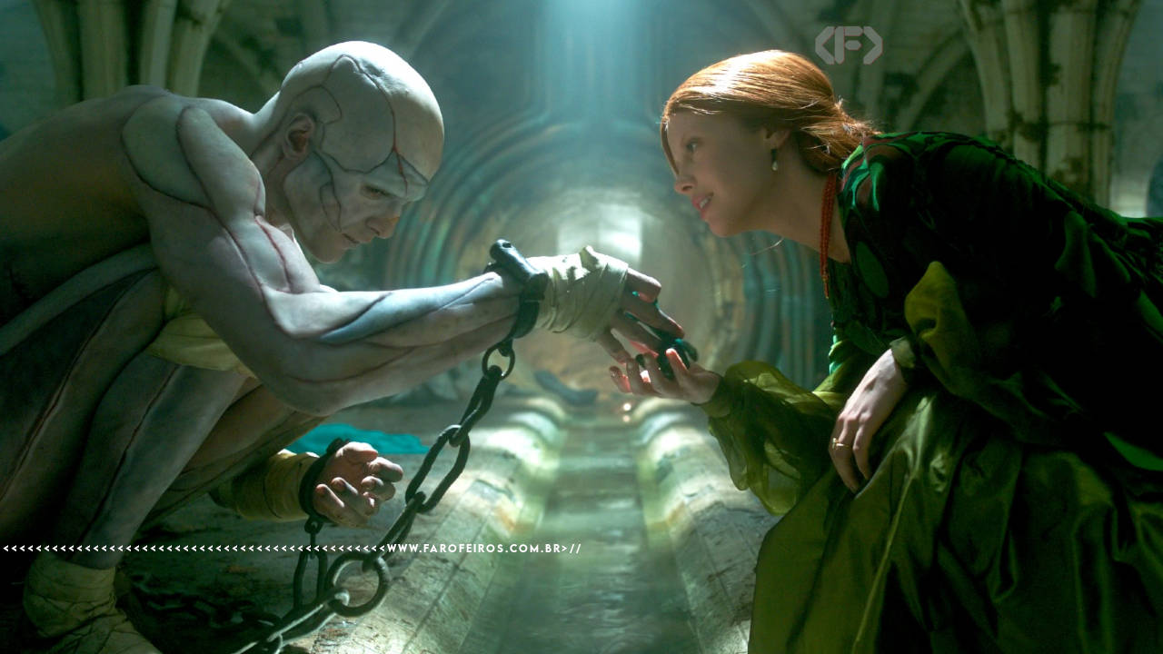 O mais interessante é que o filme evita o clichê fácil do cientista louco e do monstro feito de pedaços. Del Toro volta direto à essência do romance. O horror da existência. O peso da criação. O desespero do abandono. Aqui, Frankenstein é sobre um homem tentando desafiar a morte e uma criatura tentando entender o que significa estar viva. É Prometeu roubando o fogo, é Adão acordando num mundo onde o criador não o responde. E nesse jogo de espelhos, Elizabeth deixa de ser coadjuvante romântica e vira eixo simbólico da história. Enquanto a Criatura nasce envolta em bandagens, Elizabeth aparece num vestido que se desfaz em tiras, como se refletisse esse nascimento. A Criatura nasce para a morte. Elizabeth, cercada pela morte, ainda assim representa a esperança na vida.