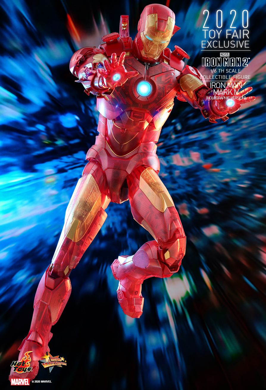O Iron Man Mark IV (Holographic Version) mede 32 cm e tem trinta pontos de articulação tem lançamento esperado até o final de 2020. Acompanha três pares de mãos, luzes LED nas mãos, peitoral e olhos além de dez peças para troca da armadura.